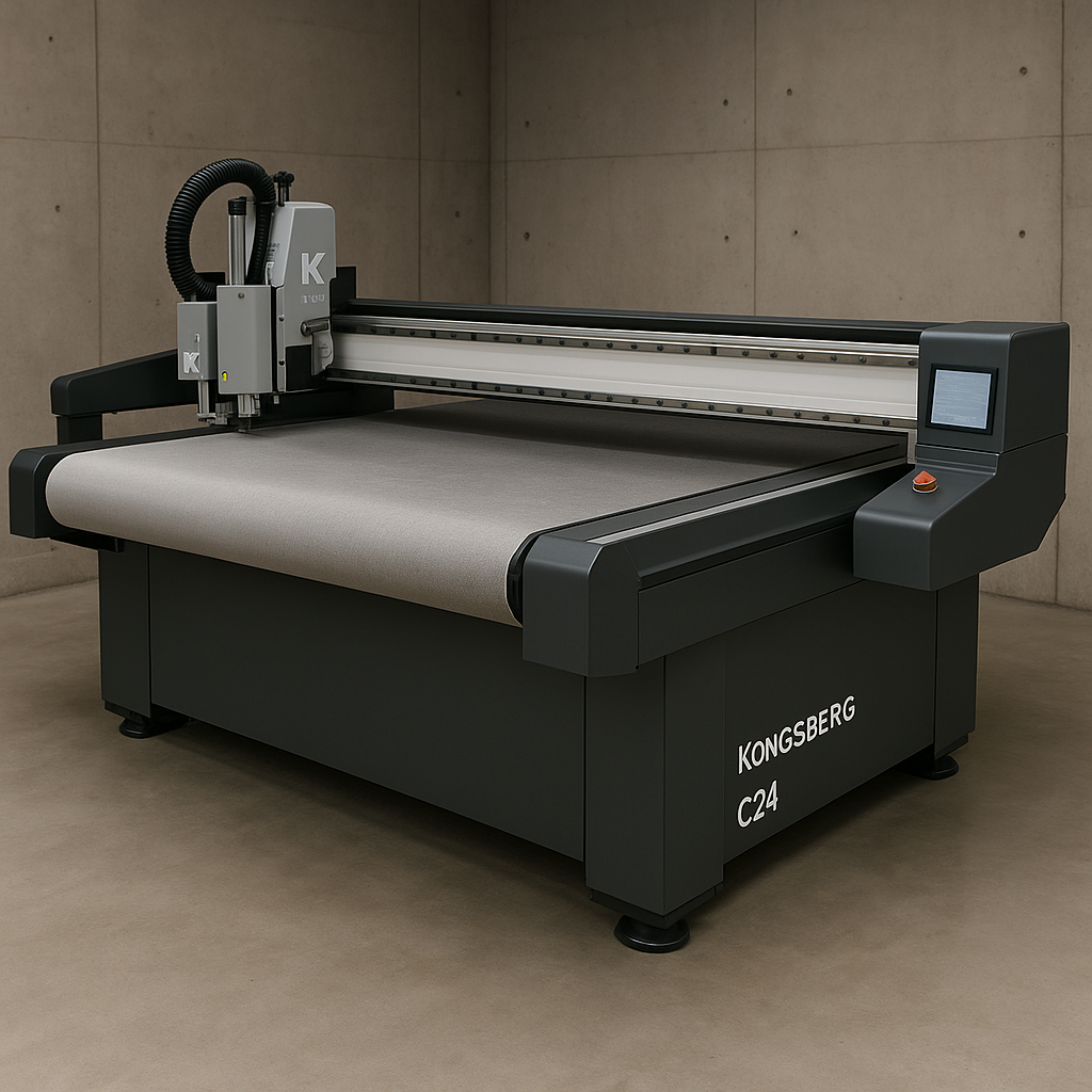 - 4× Kongsberg C24 Schneidtische: Arbeitsfläche 1.600 × 1.900 mm, ideal für präzises Schneiden, Rillen und Prototypenbau.